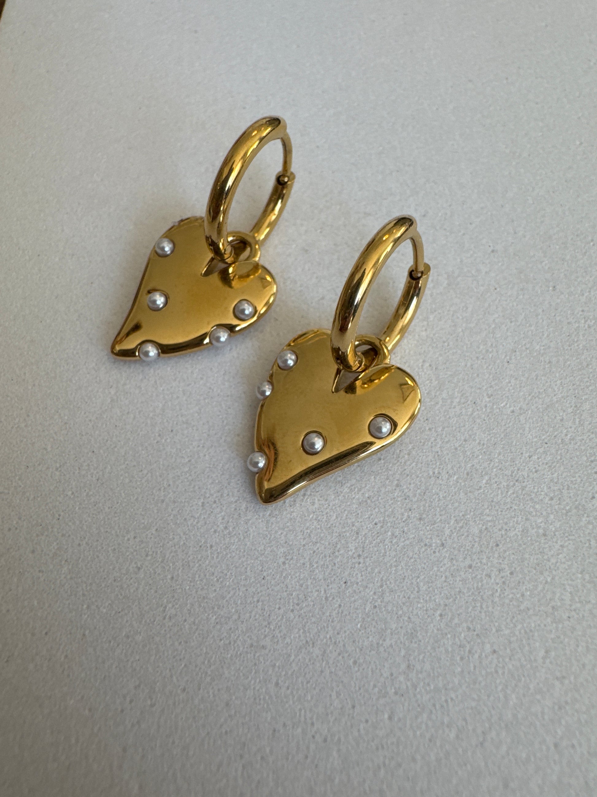 Hartvormige oorbellen van edelstaal met pareldetail.